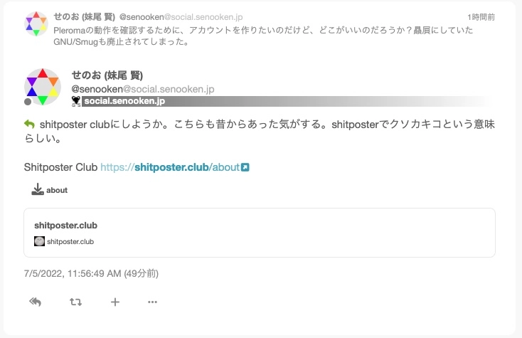 1. せのお (妹尾 賢) (senooken@social.senooken.jp)'s status on Tuesday, 05-Jul-2022 12:49:18 JST せのお (妹尾 賢) せのお (妹尾 賢)