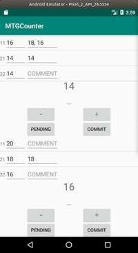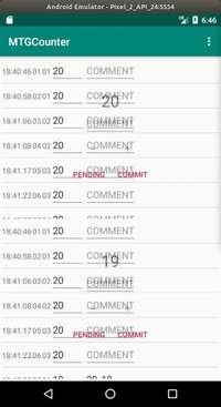 #MTGCounter v0.3.0. ライフの増減ごとに記録できるようにコメント欄を設けた。ただ,コメント欄は編集できない。EditTextを編集して確定させるには,TextWatcherを使わないといけない。面倒くさい。 https://social.senooken.jp/attachment/382301 -