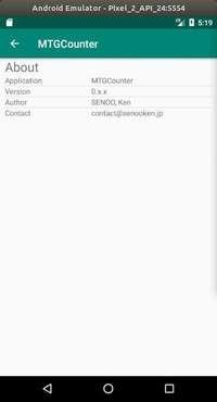 #MTGCounter v0.4.0. 今日の成果。オプションメニューを実装して,Aboutの画面を作った。ちょっとそれっぽくなった。