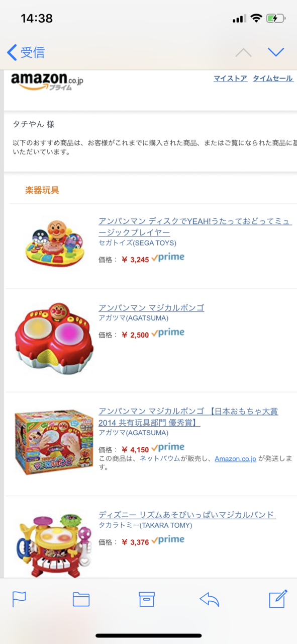 赤ちゃんだからAmazonからのメールもこんなのが届いてくる、アンパンマン!!!!