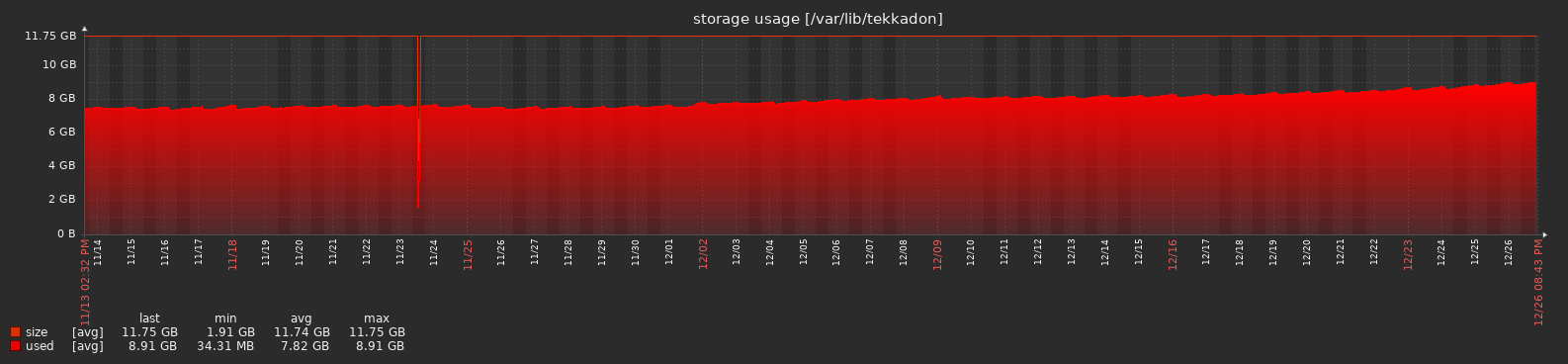 じわじわと、鉄火丼メディア鯖の空き容量が減ってきたので 16GB まで拡張した。グラフに拡張分はまだ反映されてないけどね。