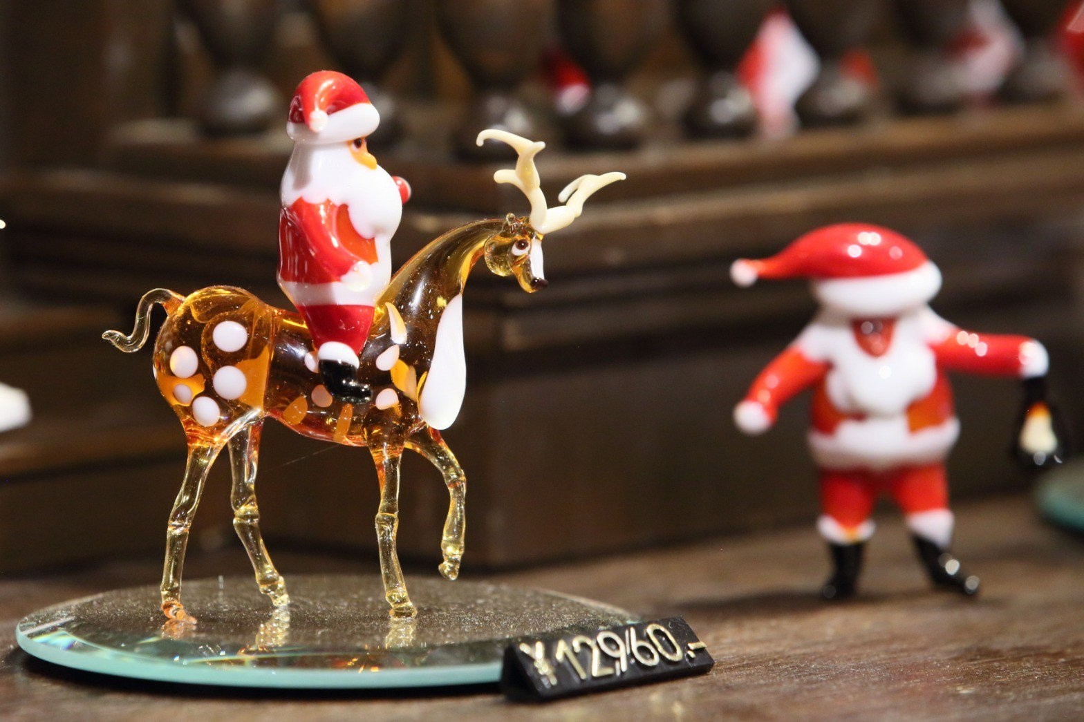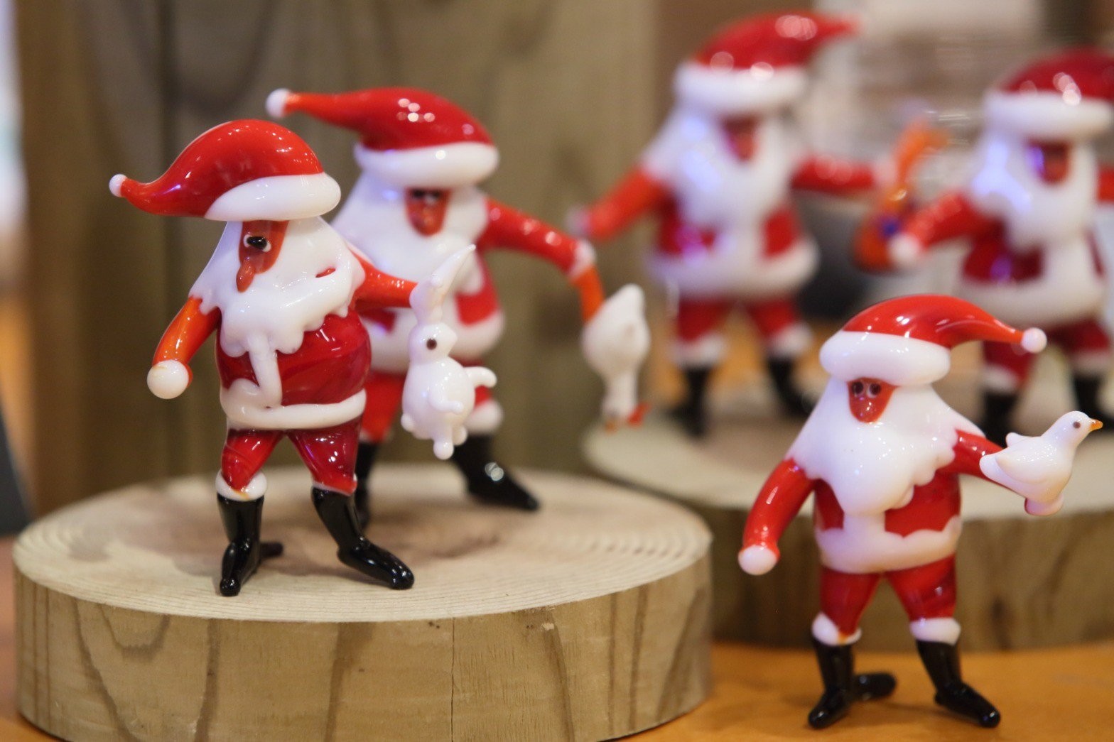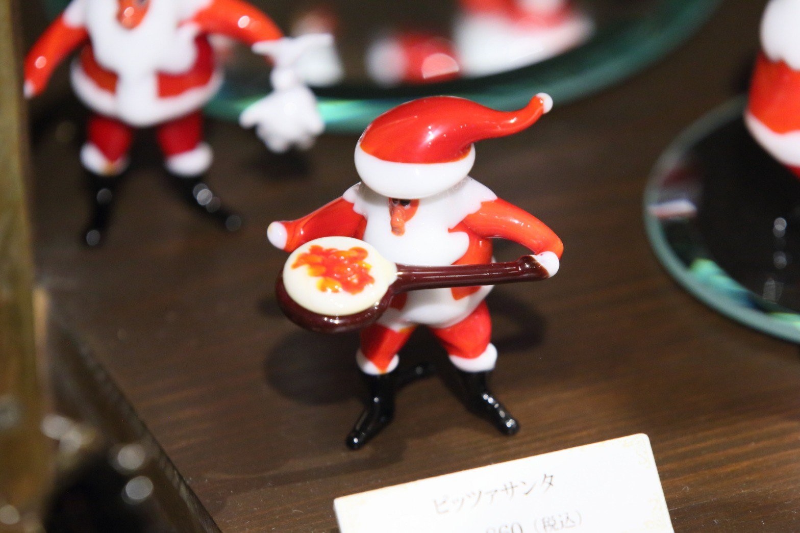 バーナーワークで作られたガラスのサンタクロース。箱根ガラスの森美術館ミュージアム・ショップにて販売中です。