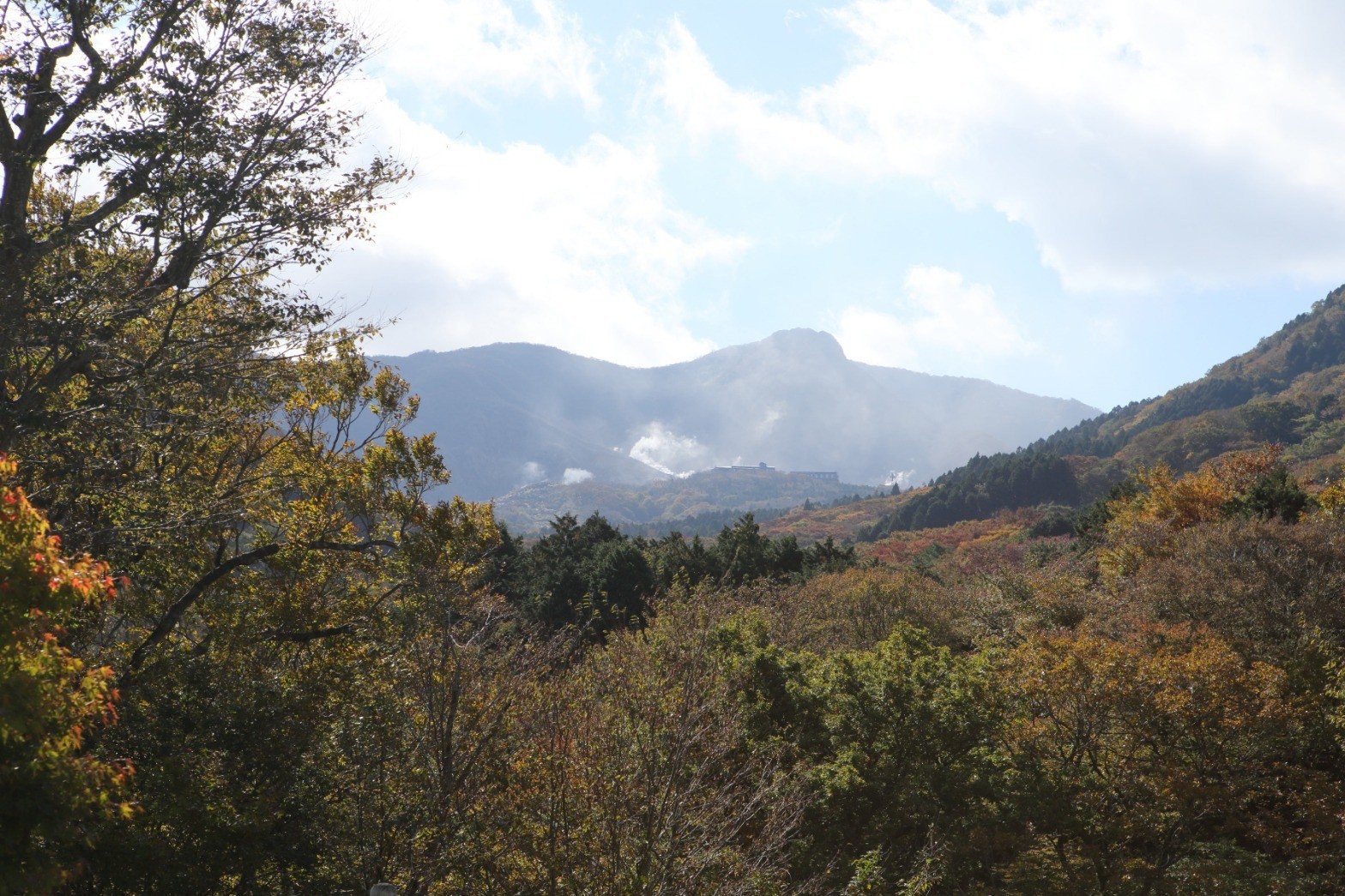 10月28日 箱根仙石原「箱根ガラスの森美術館」付近 今朝は晴れて大涌谷がよく見えます。
