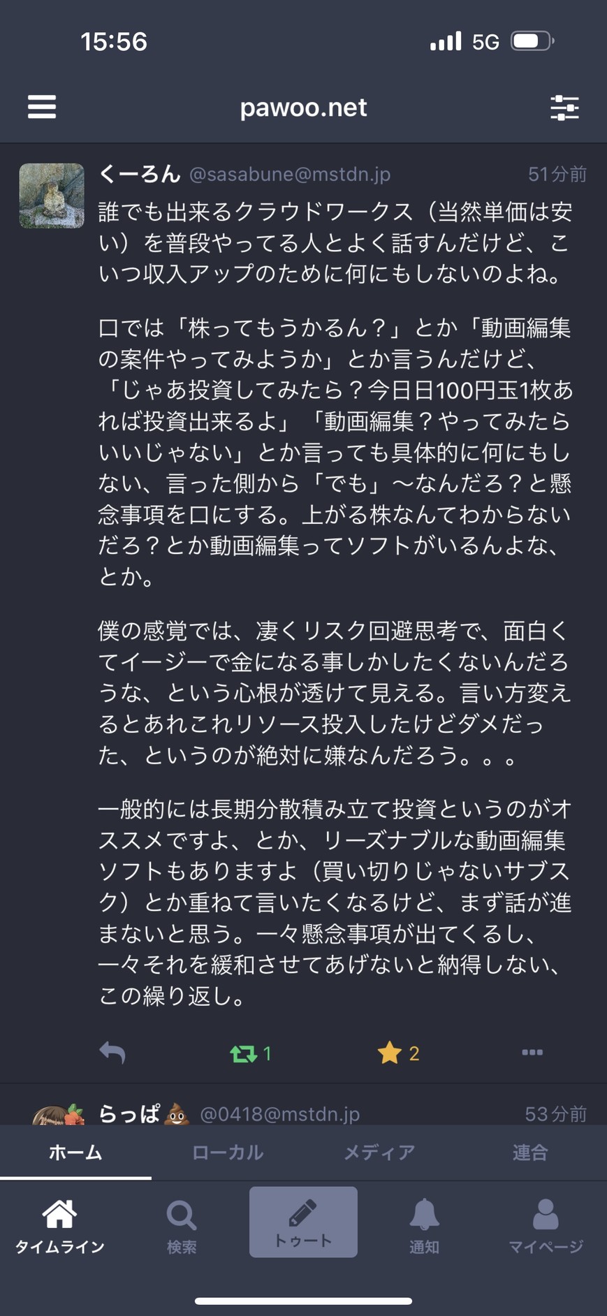 とにかくまあ、すげー難しいから、普通の仕事が安定するまでやらないほうがいい。私ですら、毎日アクセスや売り上げが気になって本業に集中できないことあるもん。たかが月3万ぐらいで、1ヶ月集中できないのよ。 https://pawoo.net/media/9vr3h9S6Oev3nG2xnSA -