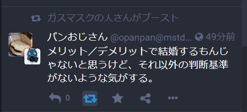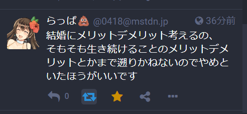 独身で、悠々自適に趣味を楽しんでいて「コスパが良い」なんて言ってるヤツ、ほとんど見たことないわ。脅すわけじゃないけど、マストドンの独身も、こっちに寄ってくハズよ。
