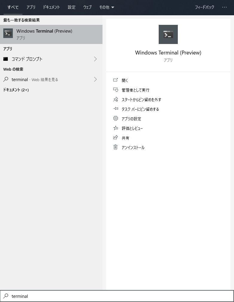 Windowsでもterminalって入力して起動できるようになったのなにげに嬉しい