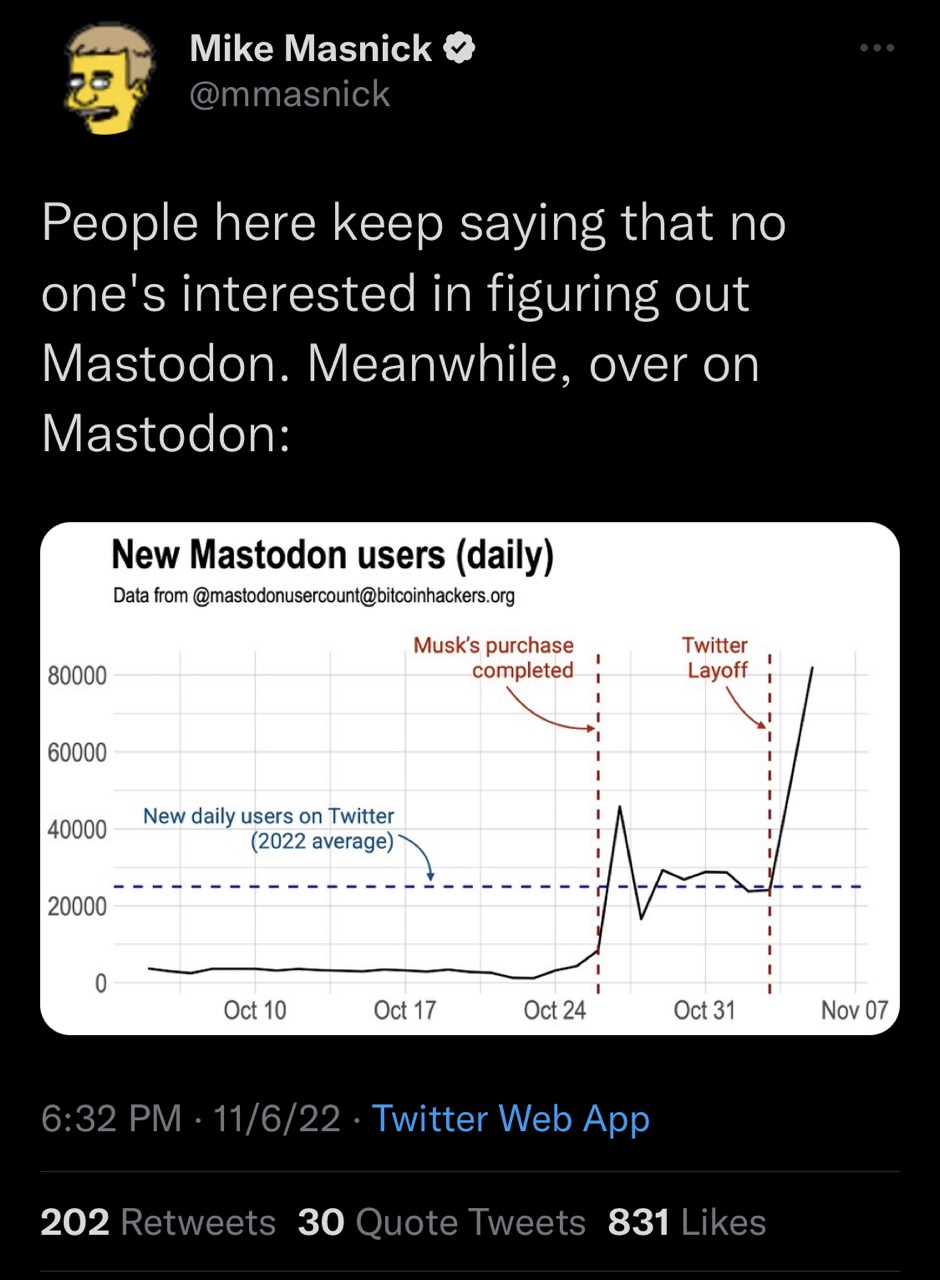 Libs are pushing the same kind of pipe dreams about a mass exodus to Mastodon as conservatives & right-wingers did with Parler, Truth Social & Gab, etc. -