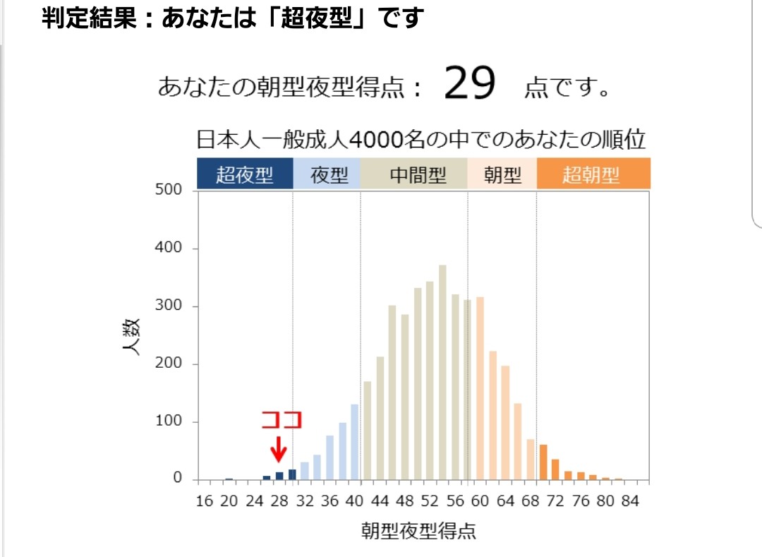 グラフがあるのは朝型夜型だった これ本当に朝型に診断される人いるのか謎です