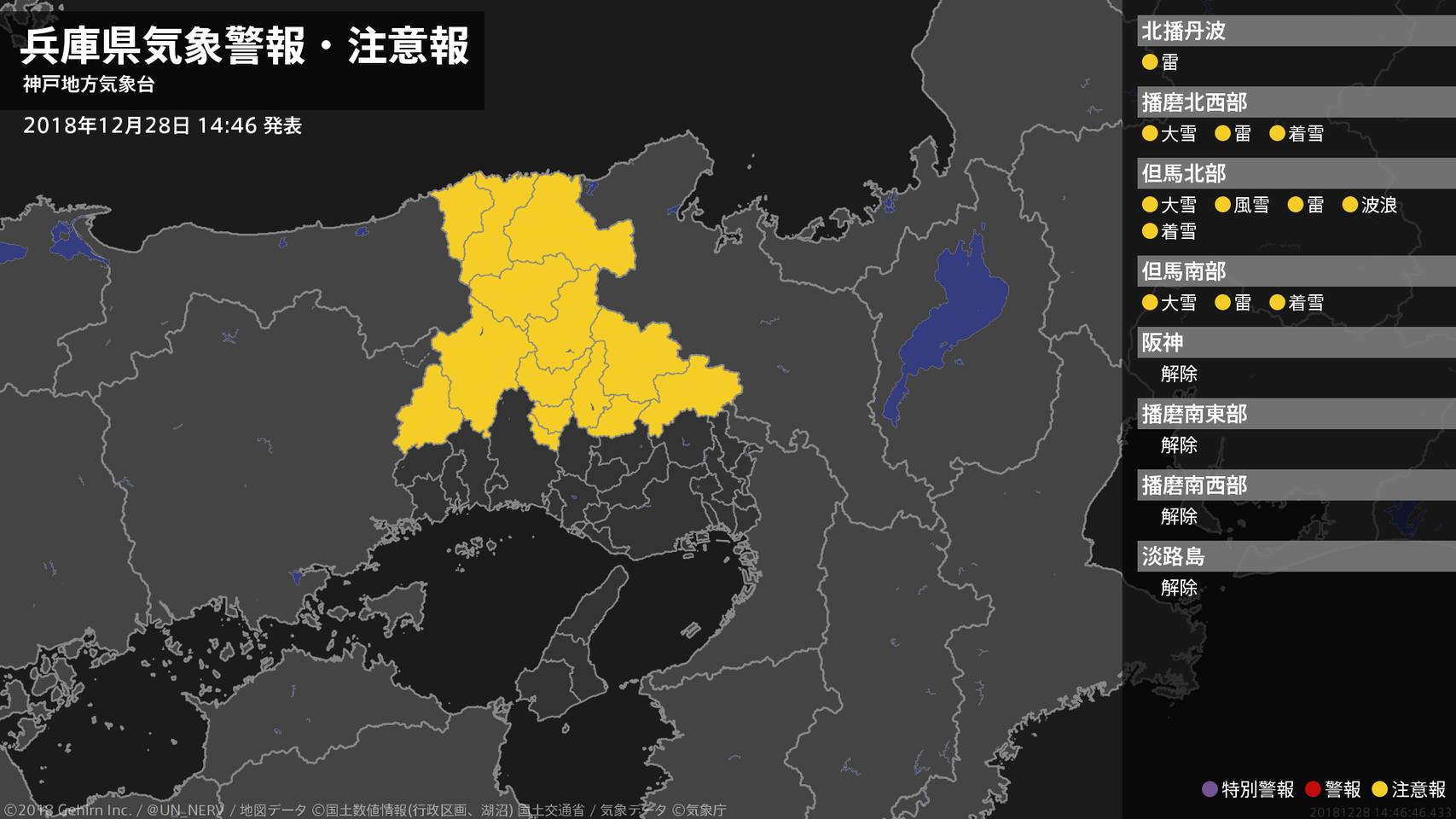 【兵庫県 気象警報・注意報 2018年12月28日 14:46】