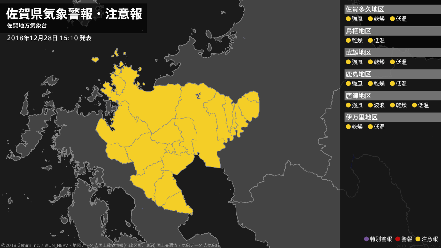 【佐賀県 気象警報・注意報 2018年12月28日 15:10】