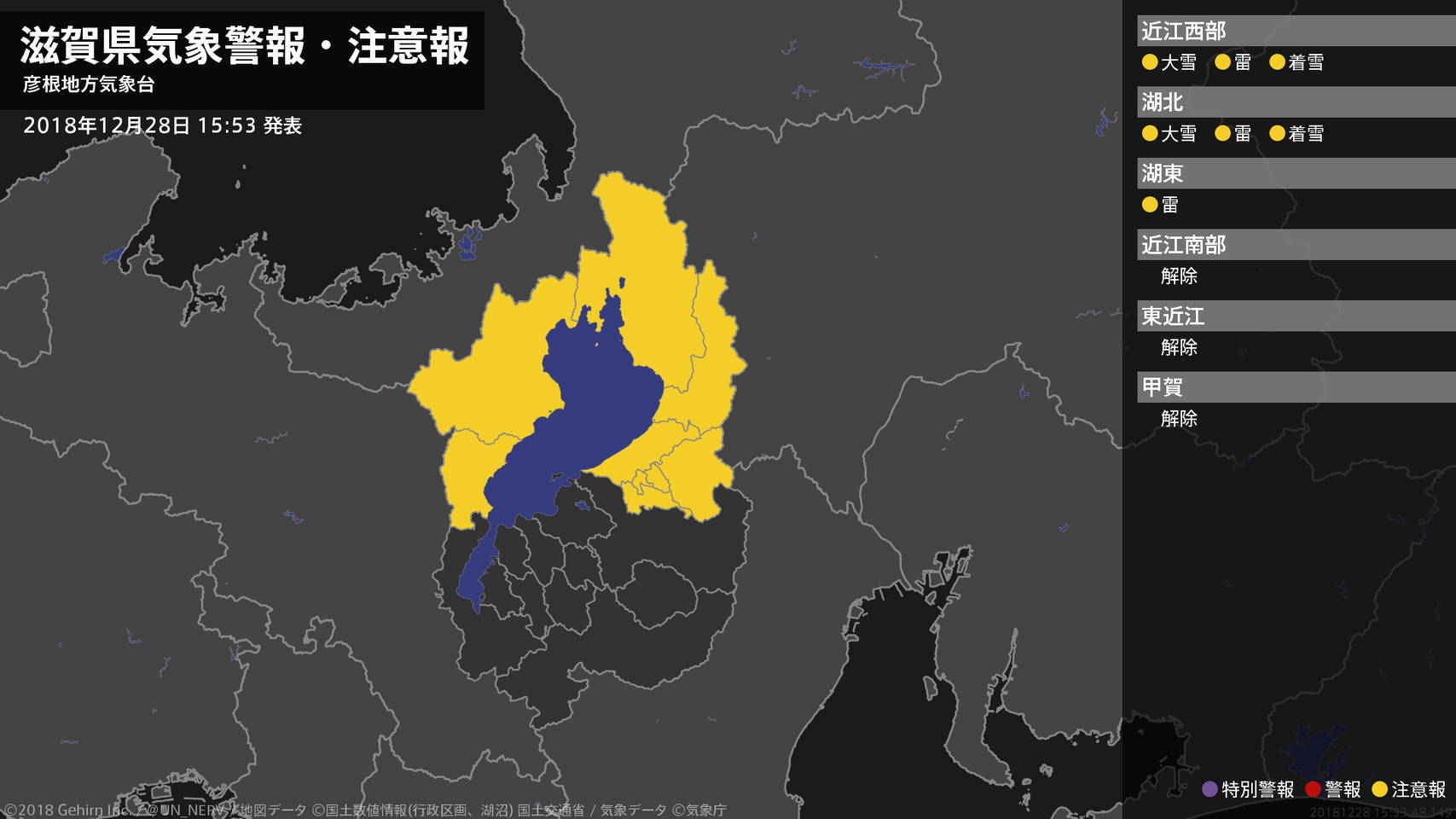 【滋賀県 気象警報・注意報 2018年12月28日 15:53】