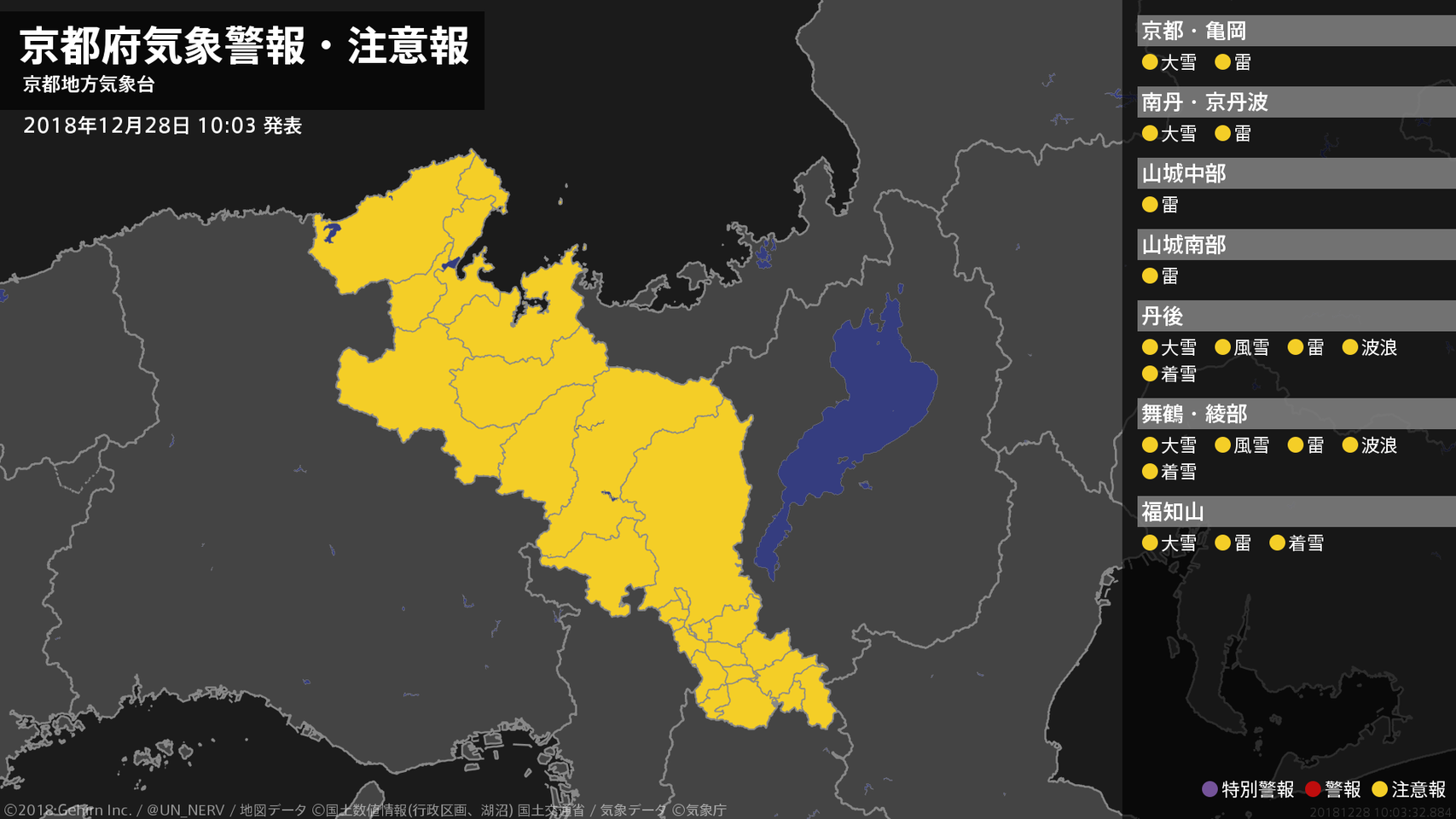 【京都府 気象警報・注意報 2018年12月28日 10:03】