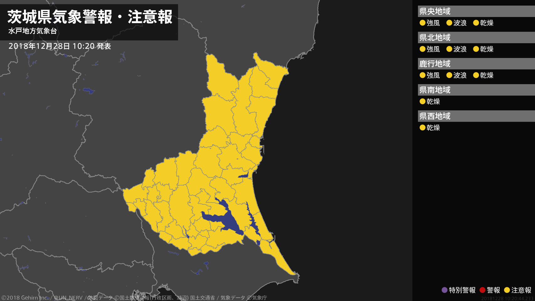 【茨城県 気象警報・注意報 2018年12月28日 10:20】