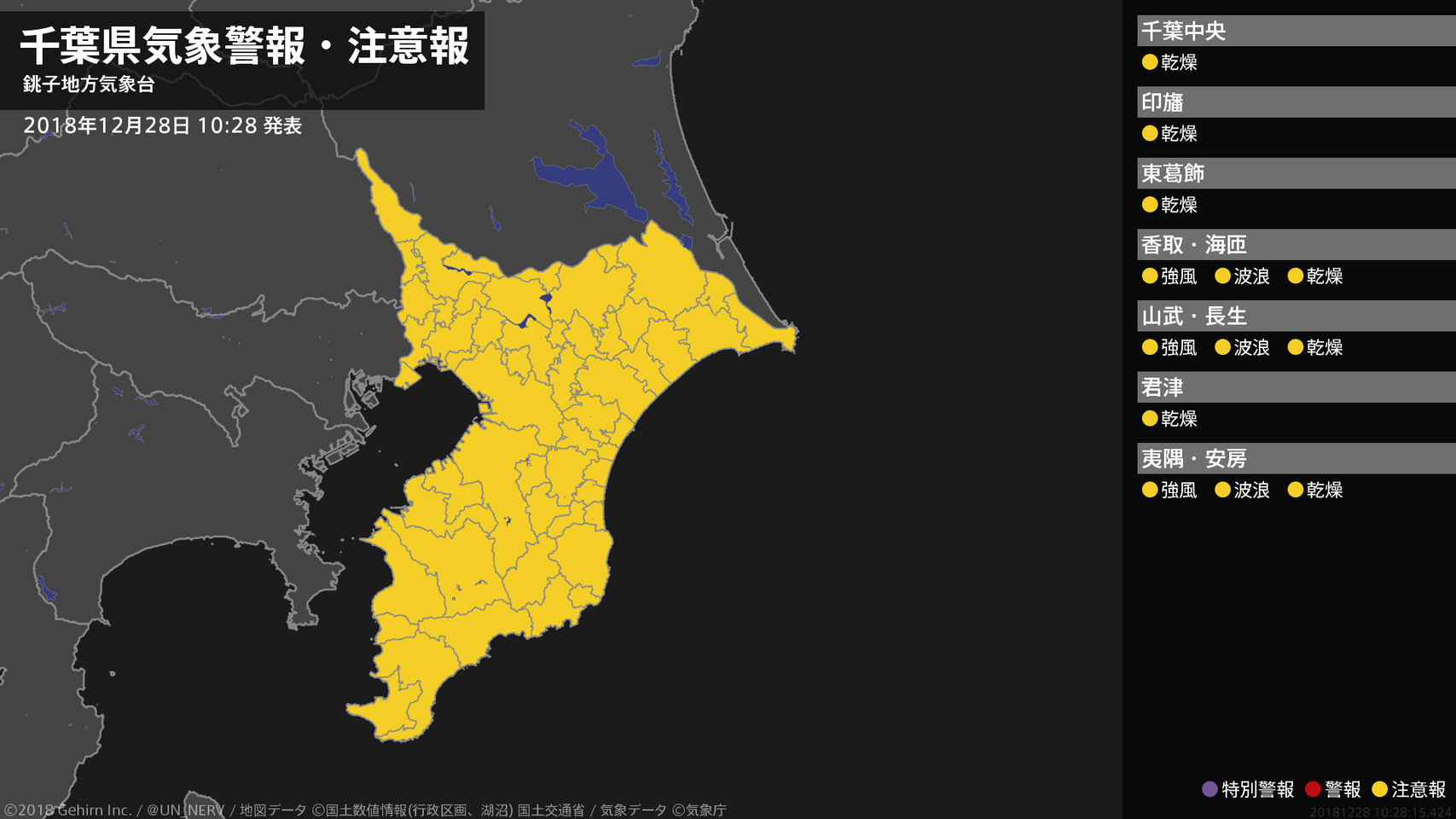 【千葉県 気象警報・注意報 2018年12月28日 10:28】
