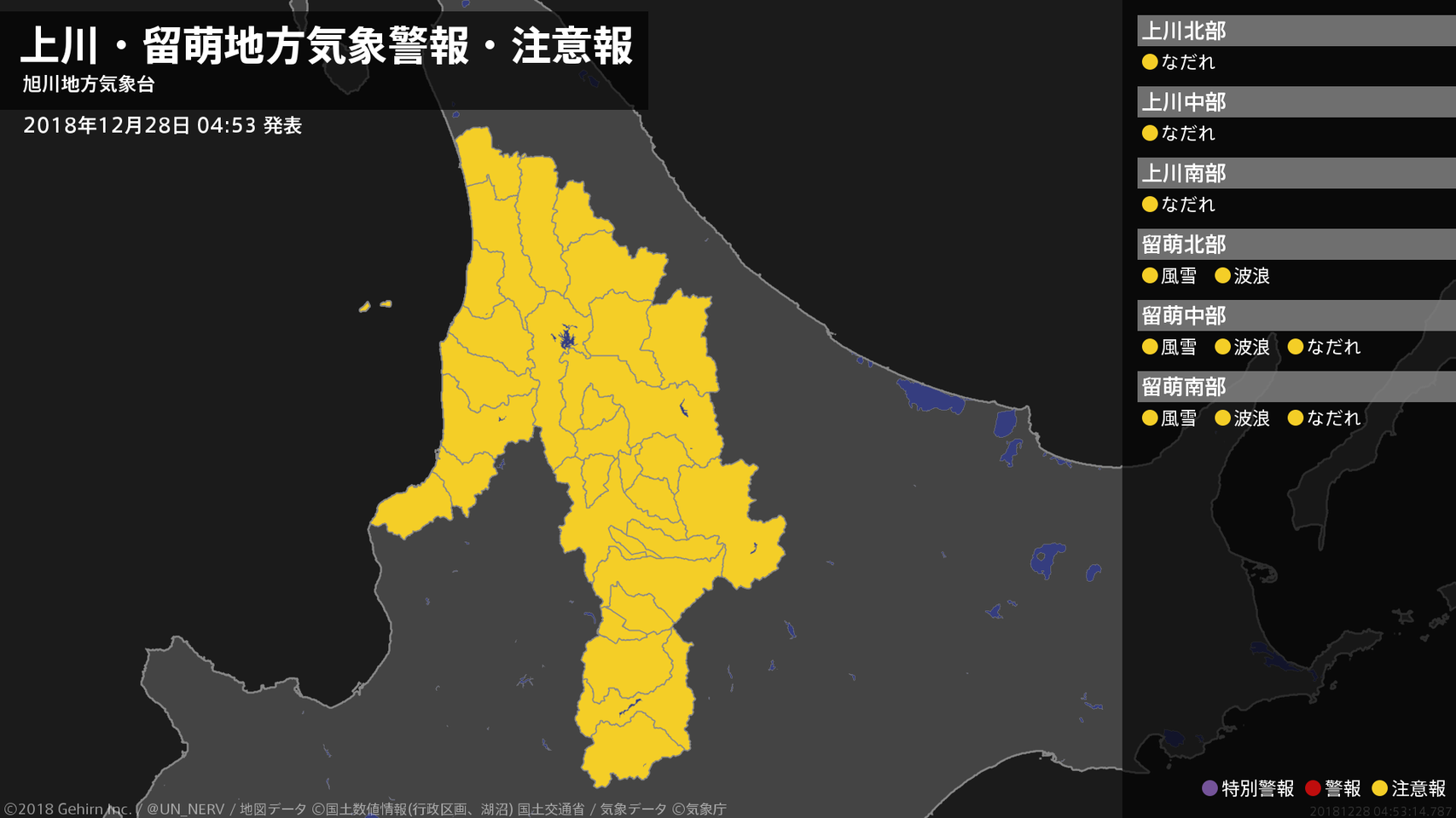 【上川・留萌地方 気象警報・注意報 2018年12月28日 04:53】