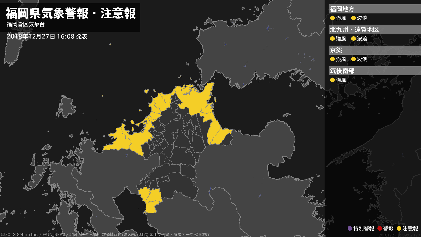 【福岡県 気象警報・注意報 2018年12月27日 16:09】