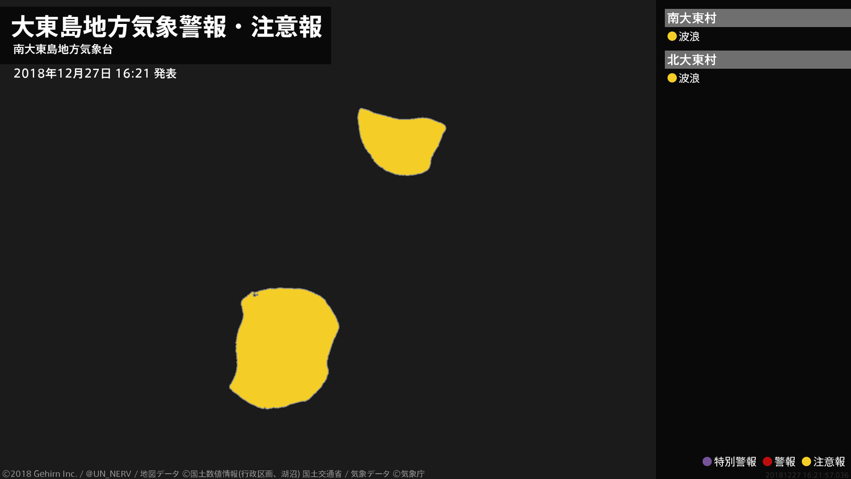 【大東島地方 気象警報・注意報 2018年12月27日 16:21】