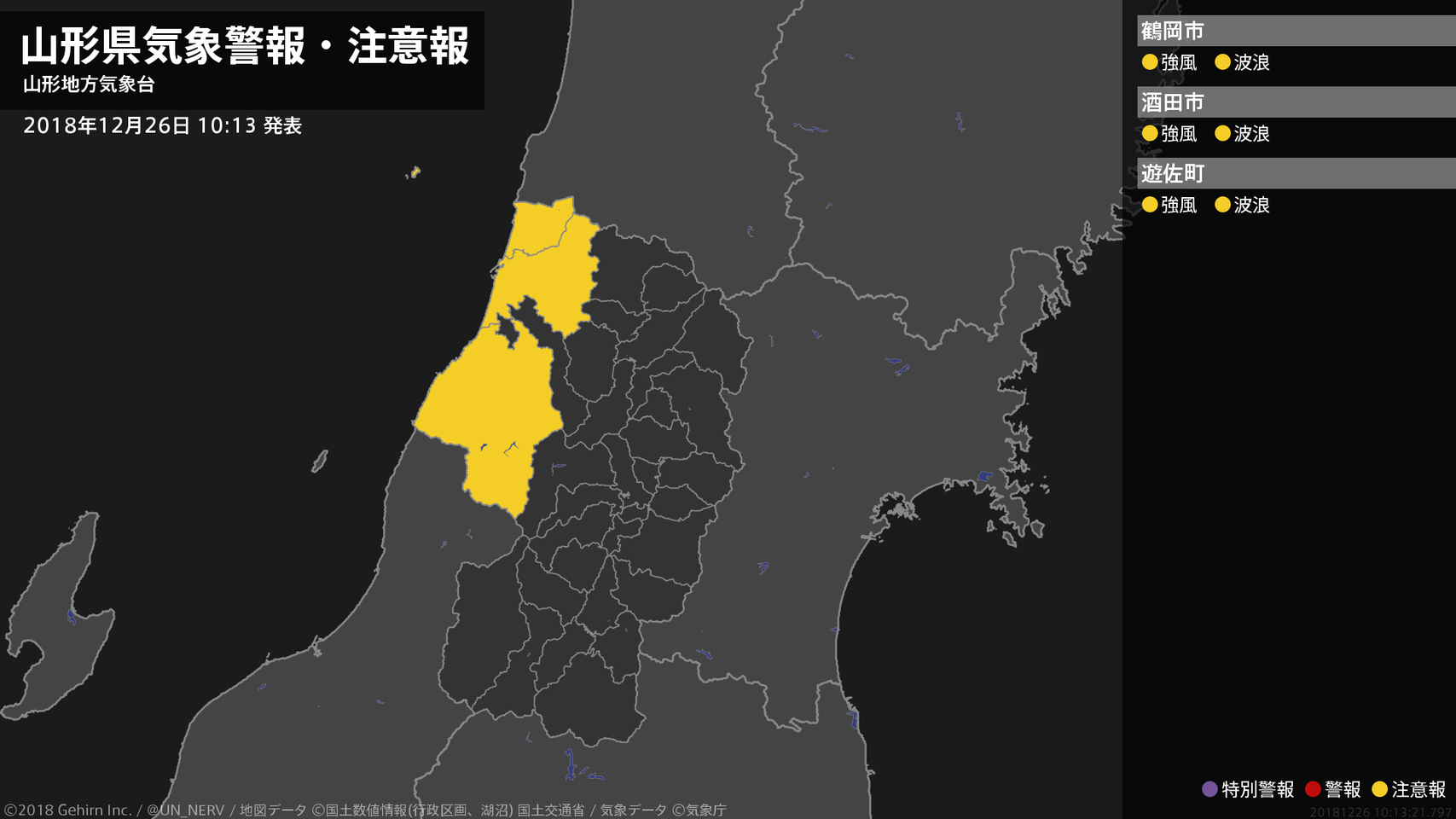 【山形県 気象警報・注意報 2018年12月26日 10:13】