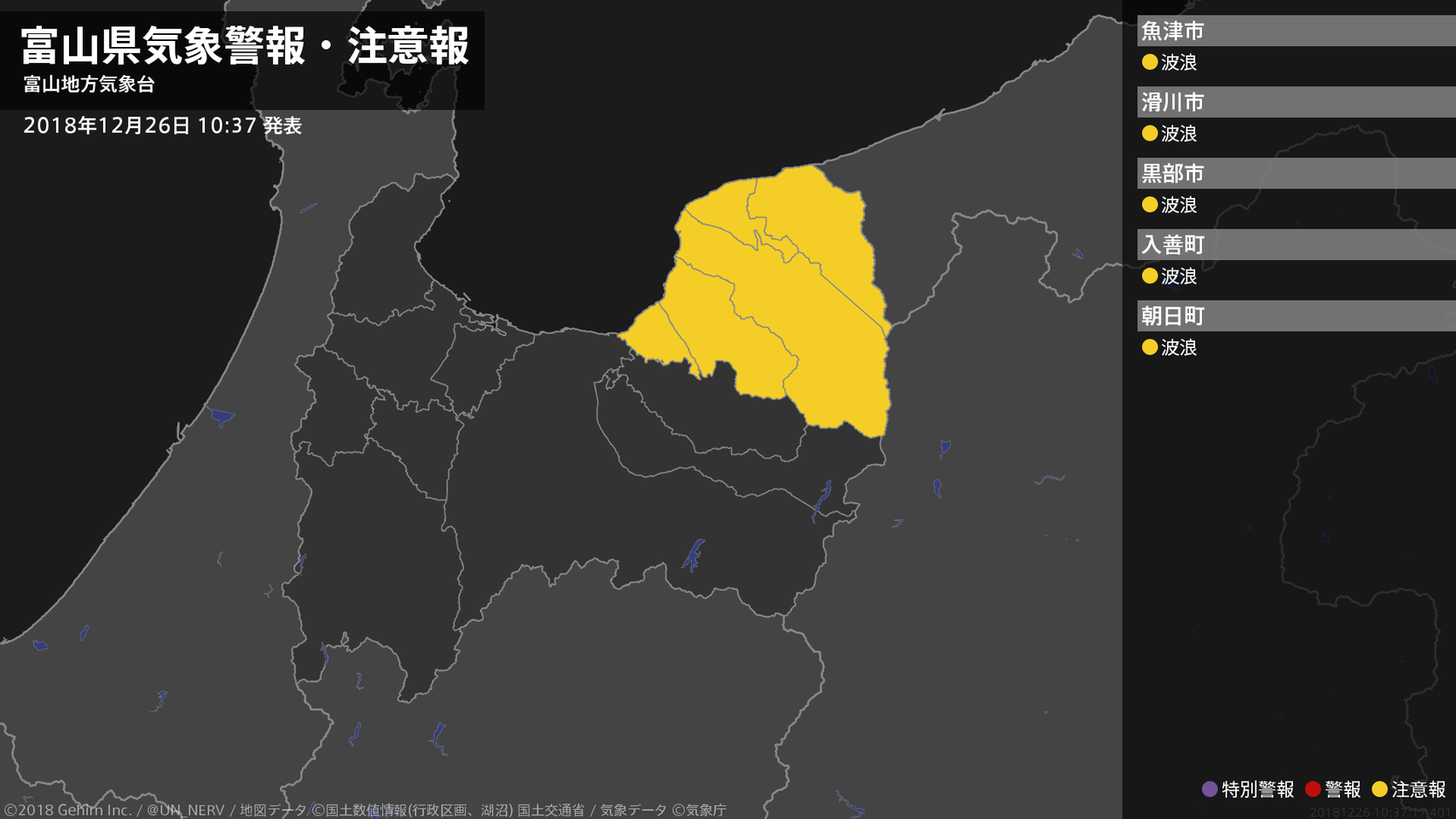 【富山県 気象警報・注意報 2018年12月26日 10:37】