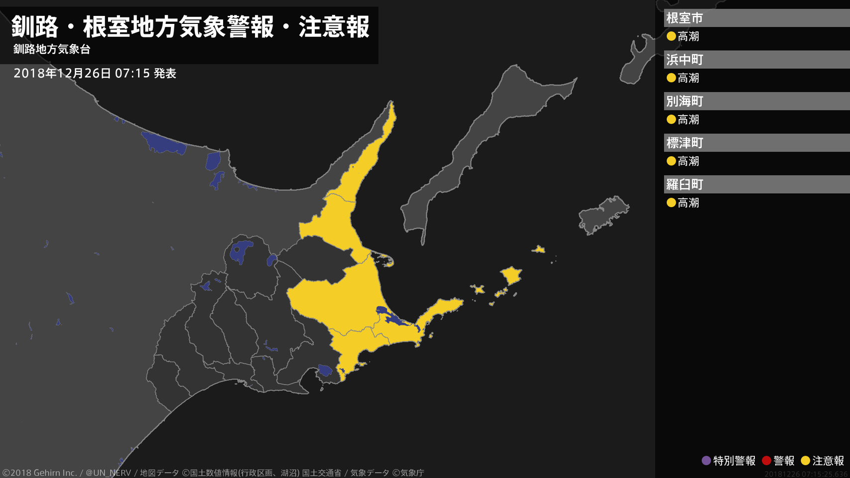 【釧路・根室地方 気象警報・注意報 2018年12月26日 07:15】