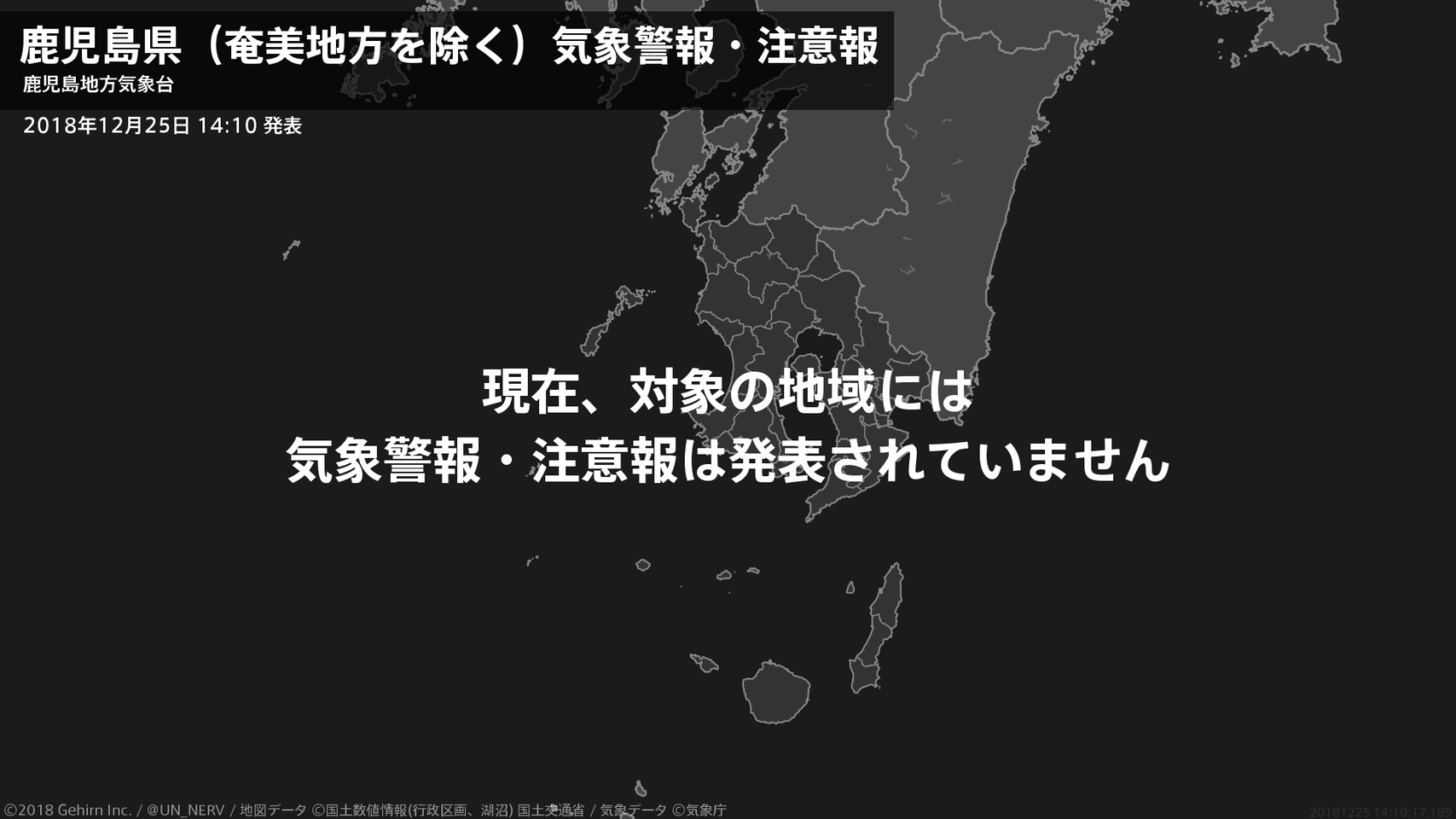 【鹿児島県(奄美地方を除く) 気象警報・注意報 2018年12月25日 14:10】