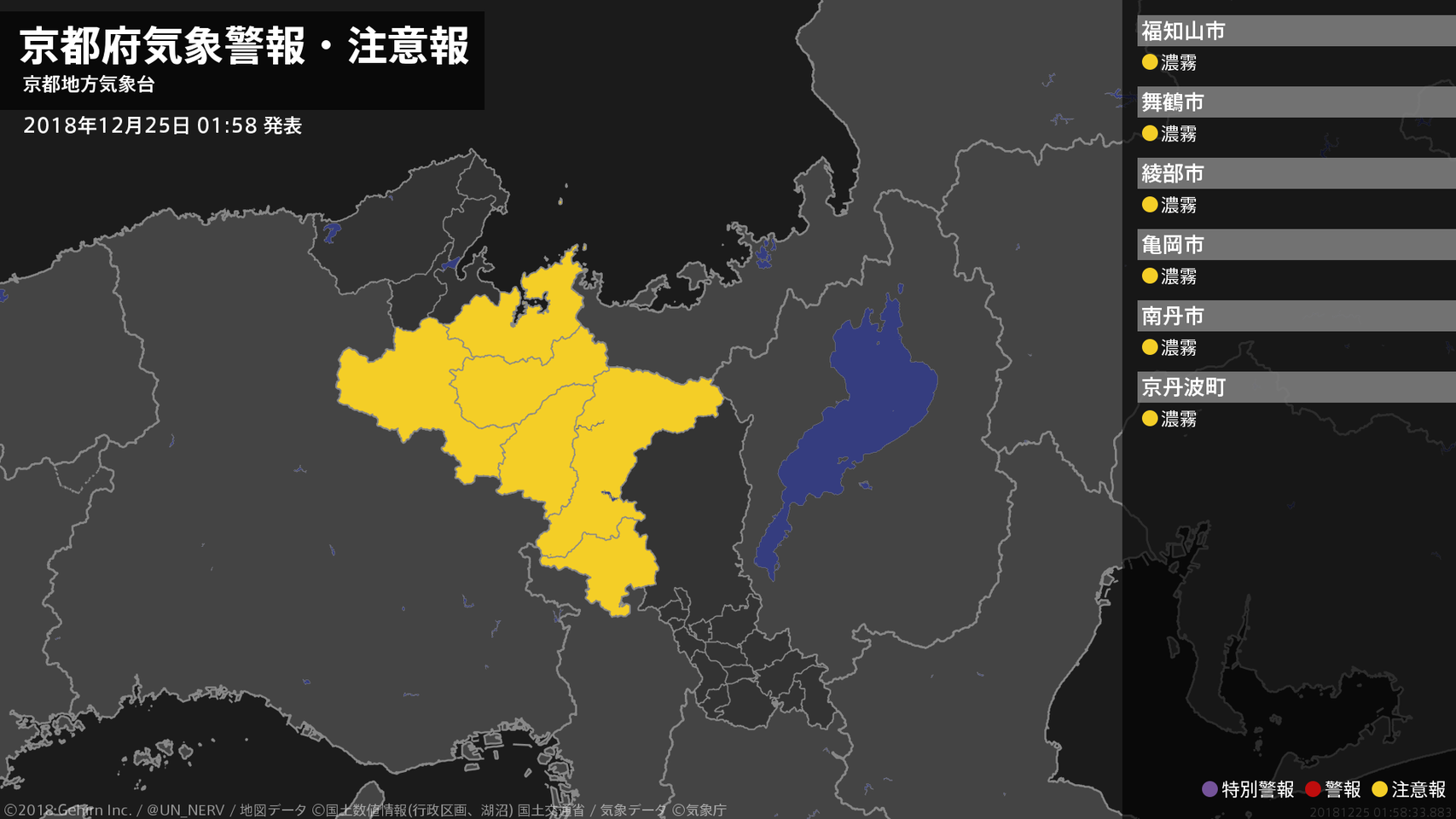 【京都府 気象警報・注意報 2018年12月25日 01:58】