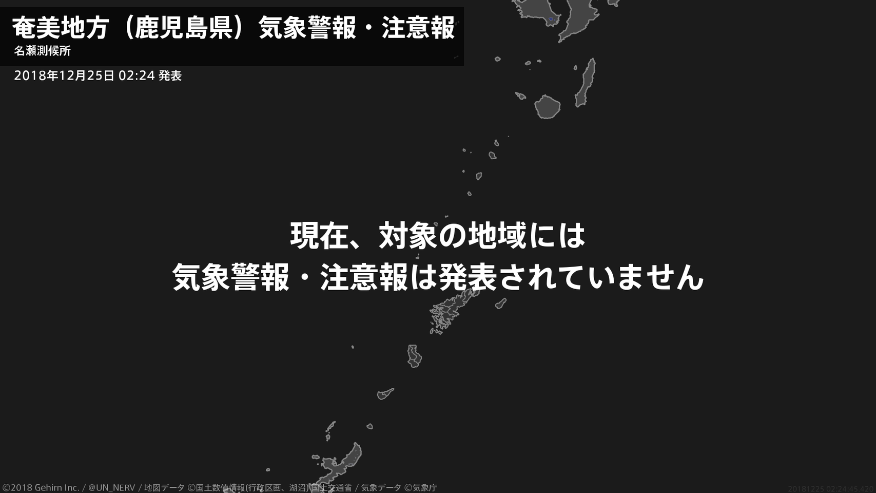 【奄美地方(鹿児島県) 気象警報・注意報 2018年12月25日 02:24】