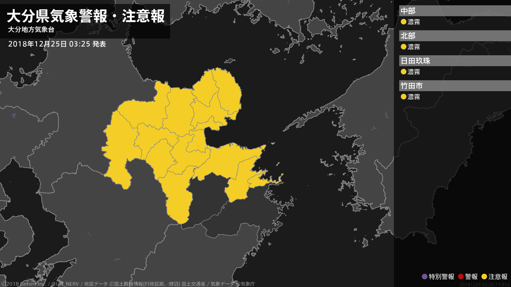 【大分県 気象警報・注意報 2018年12月25日 03:25】