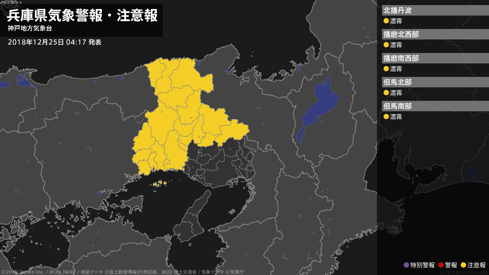 【兵庫県 気象警報・注意報 2018年12月25日 04:17】