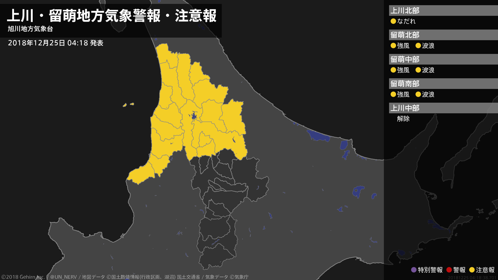 【上川・留萌地方 気象警報・注意報 2018年12月25日 04:18】