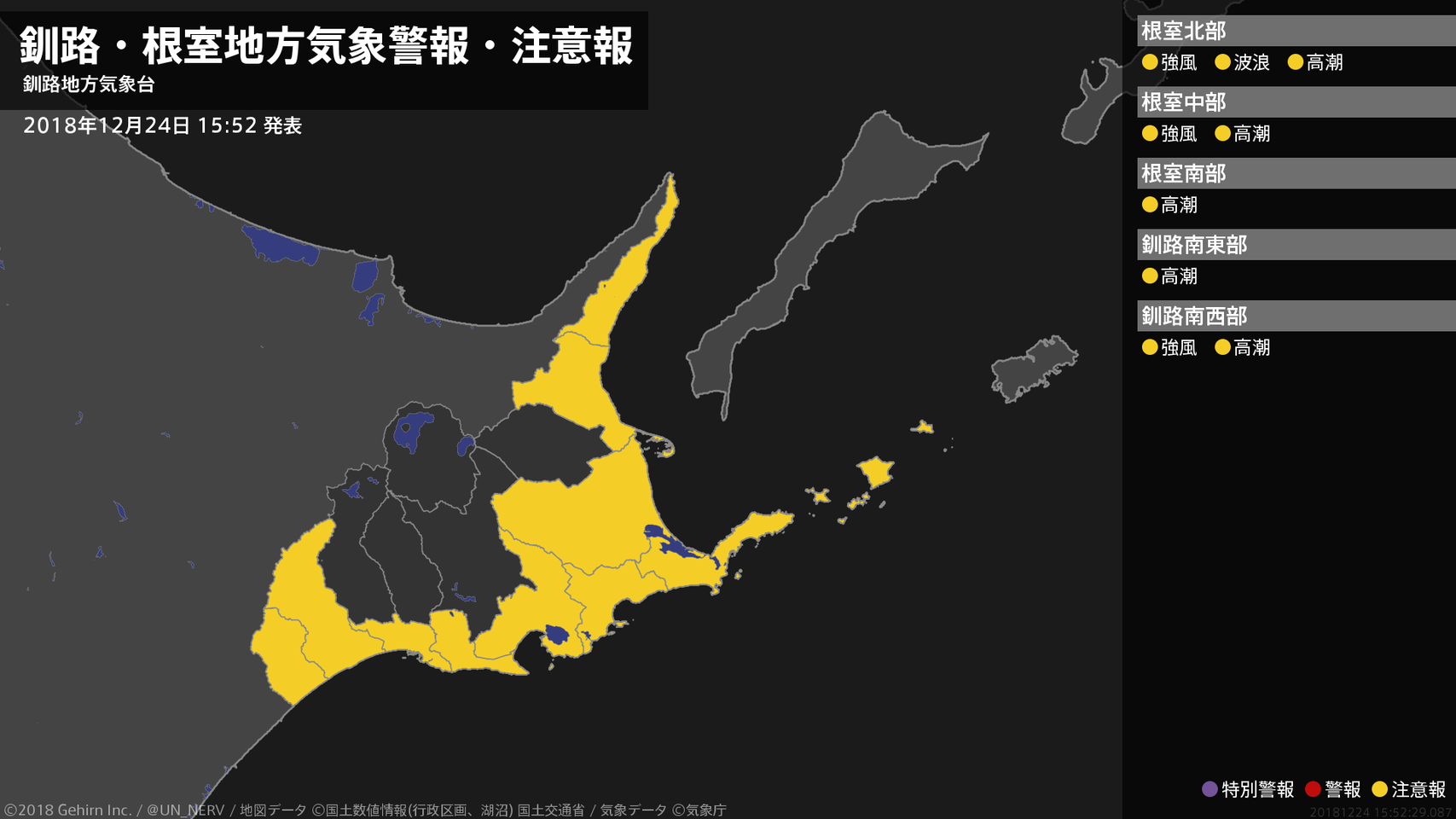 【釧路・根室地方 気象警報・注意報 2018年12月24日 15:52】