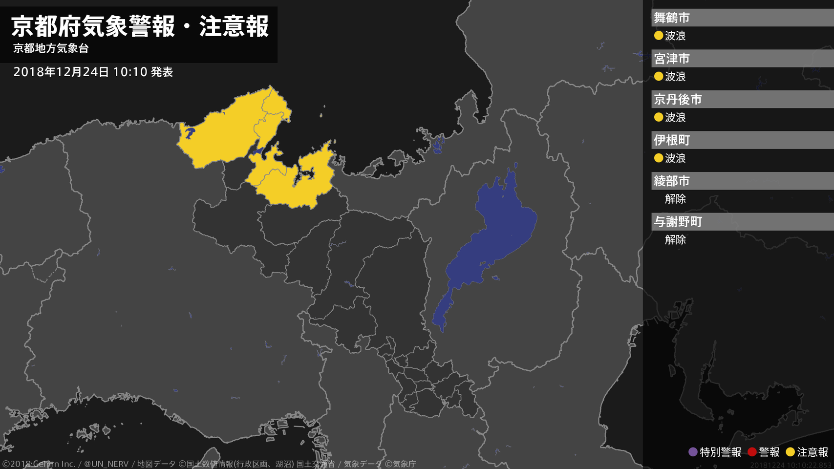 【京都府 気象警報・注意報 2018年12月24日 10:10】