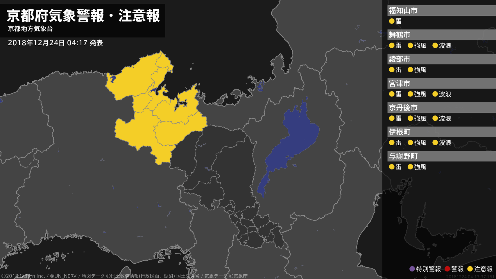 【京都府 気象警報・注意報 2018年12月24日 04:17】