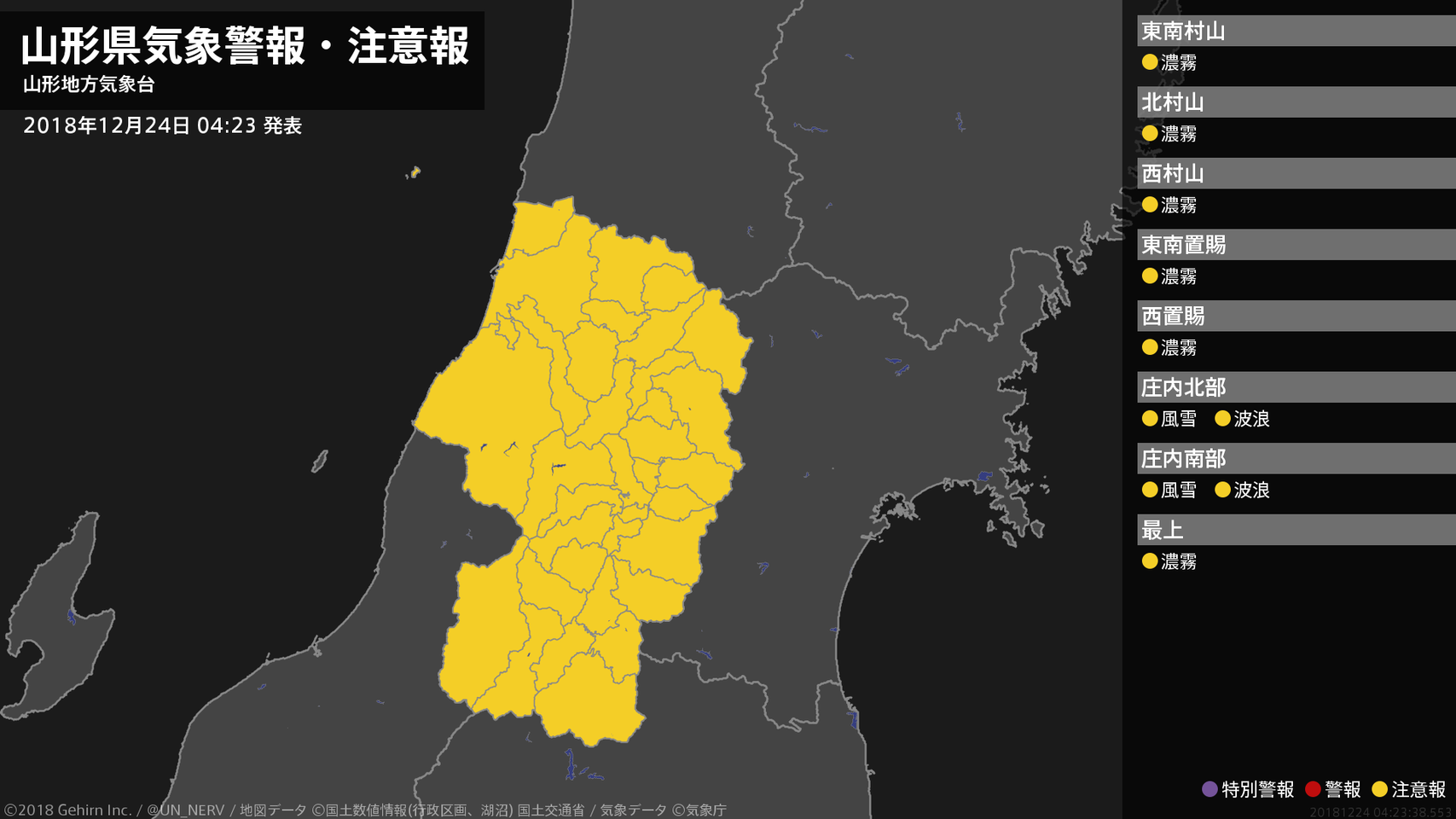 【山形県 気象警報・注意報 2018年12月24日 04:23】