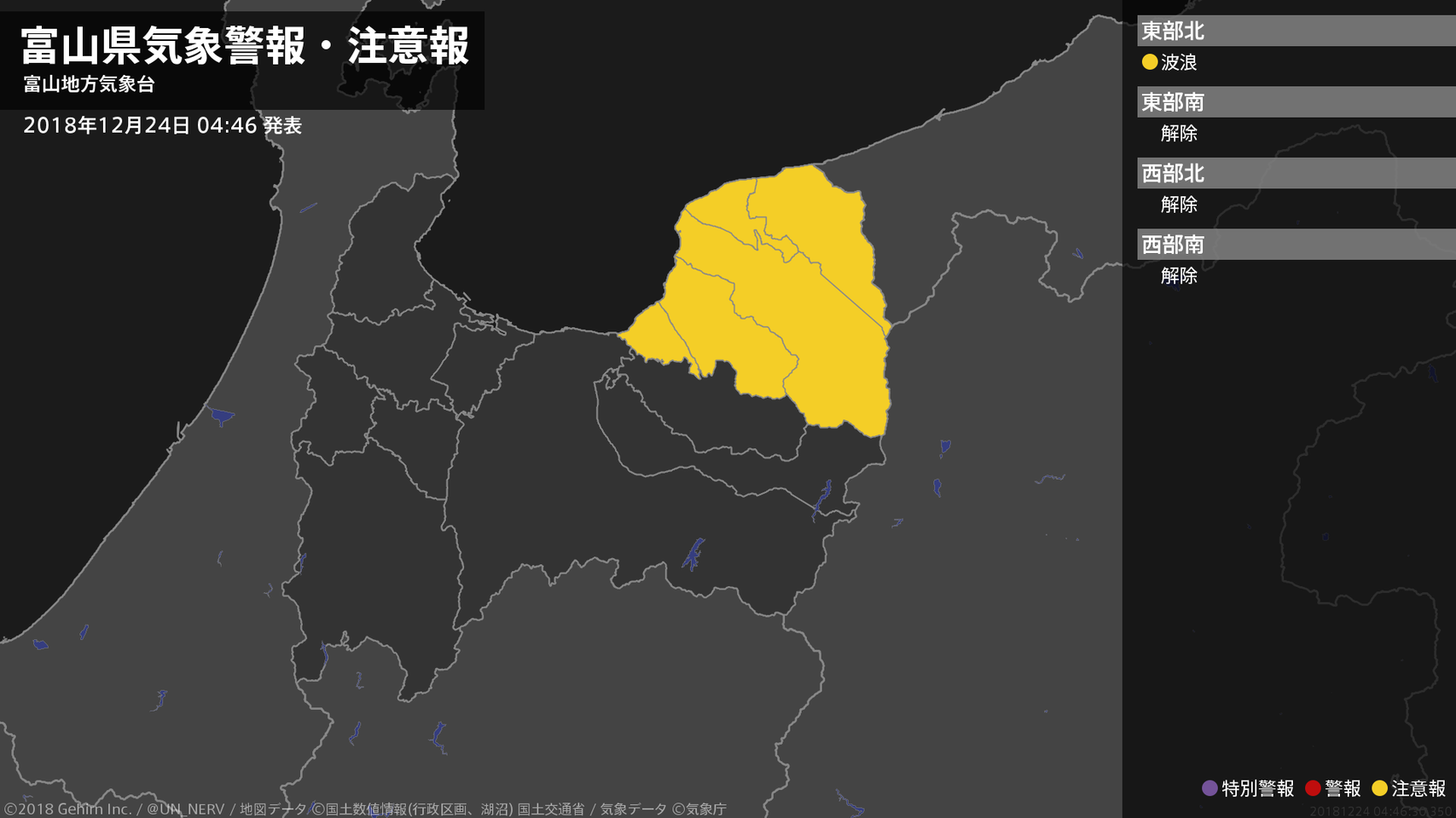 【富山県 気象警報・注意報 2018年12月24日 04:46】