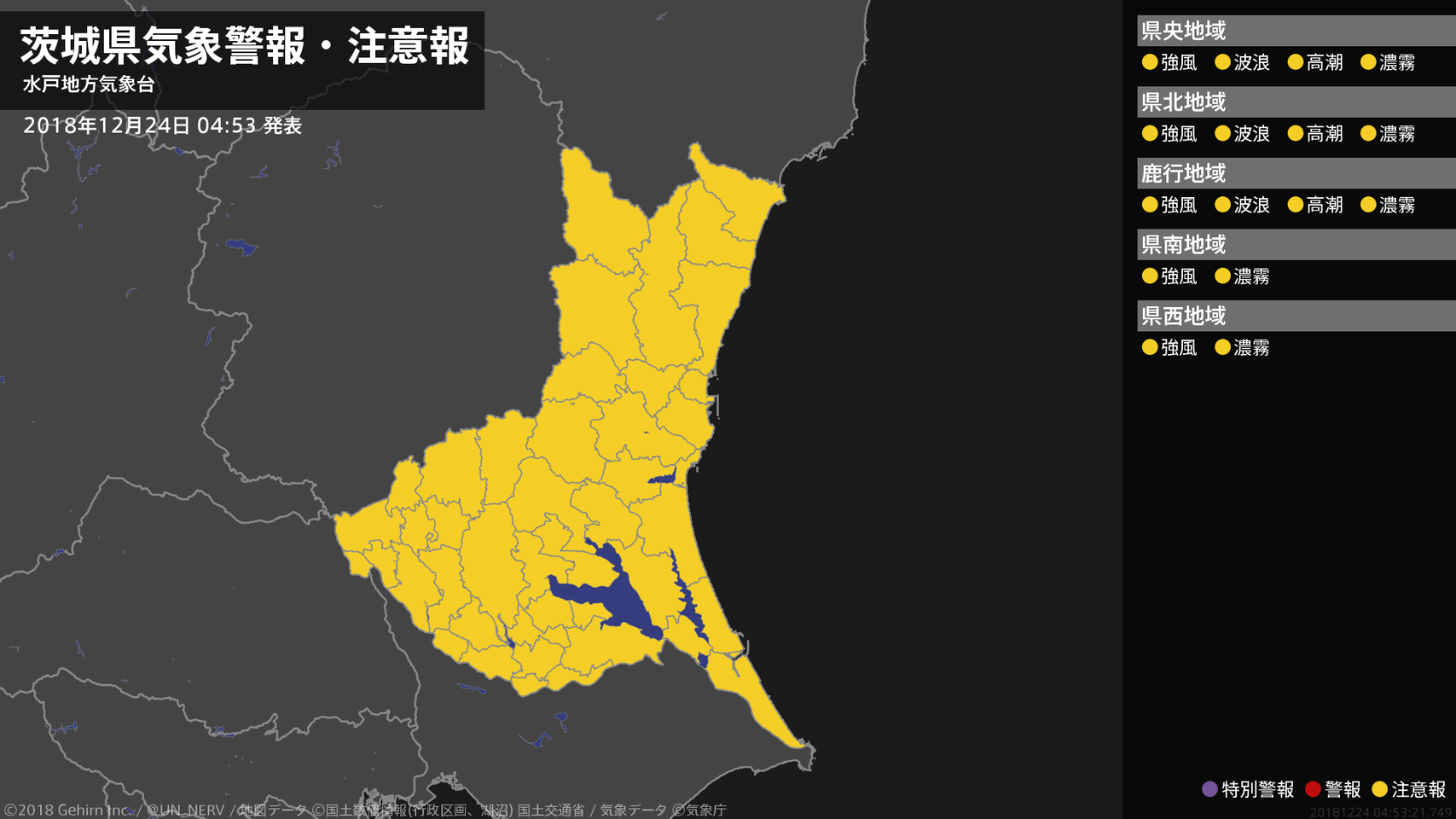 【茨城県 気象警報・注意報 2018年12月24日 04:53】