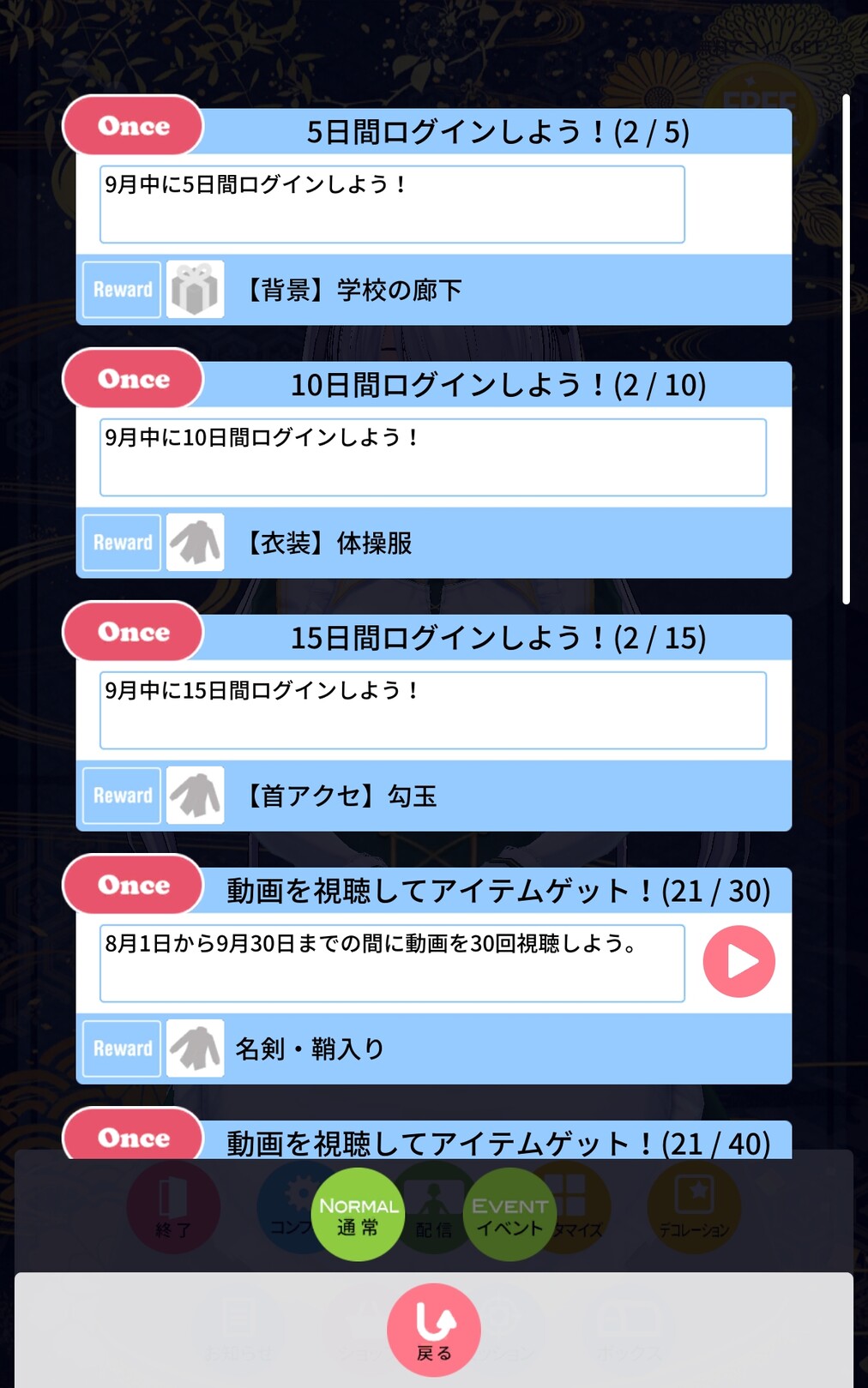 そして今月のログボは体操服!……勾玉!?