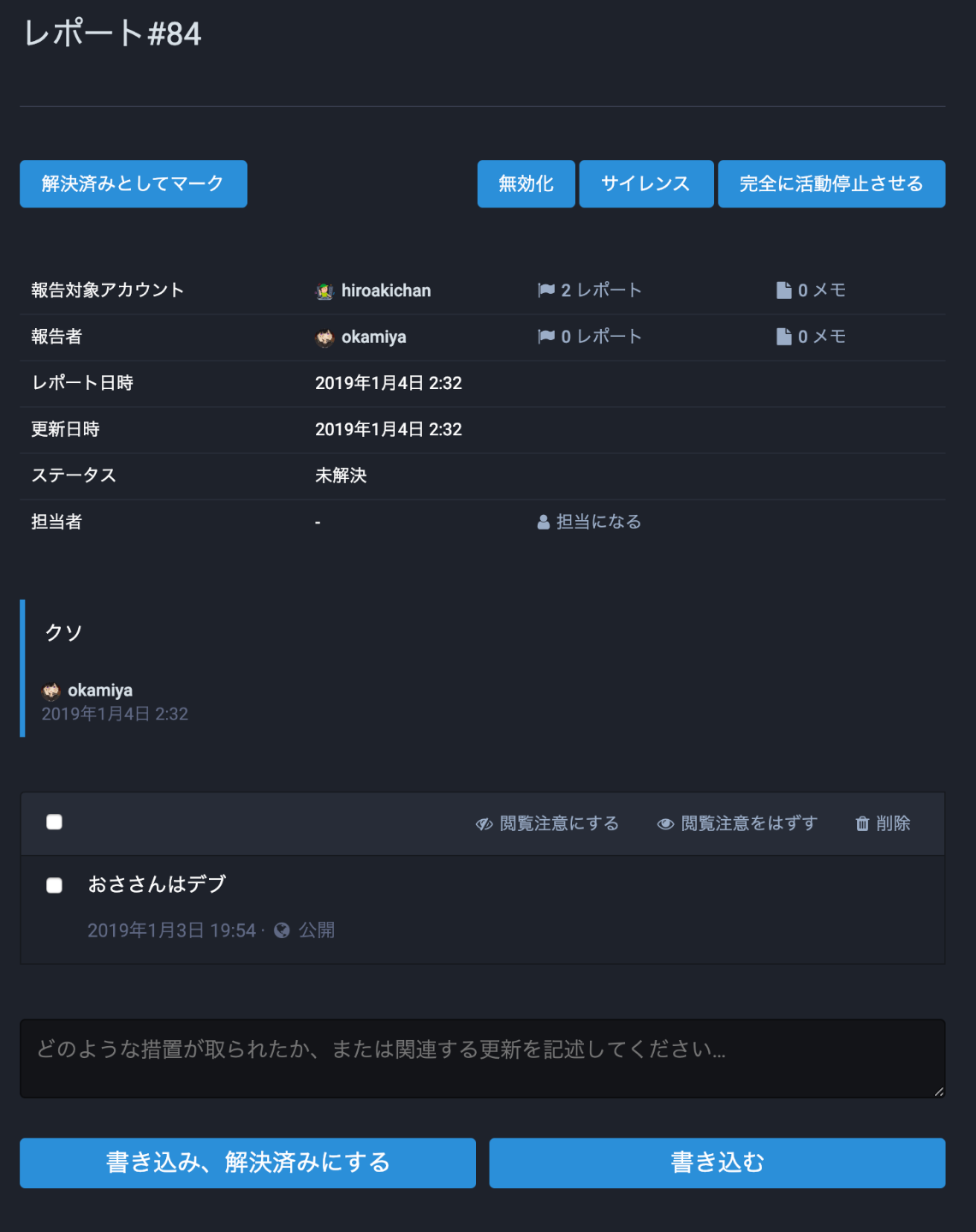 ネタのスパム報告はいいんですけど公開して欲しいのかどうか分からないので,ネタスパム報告したときはご一報ください