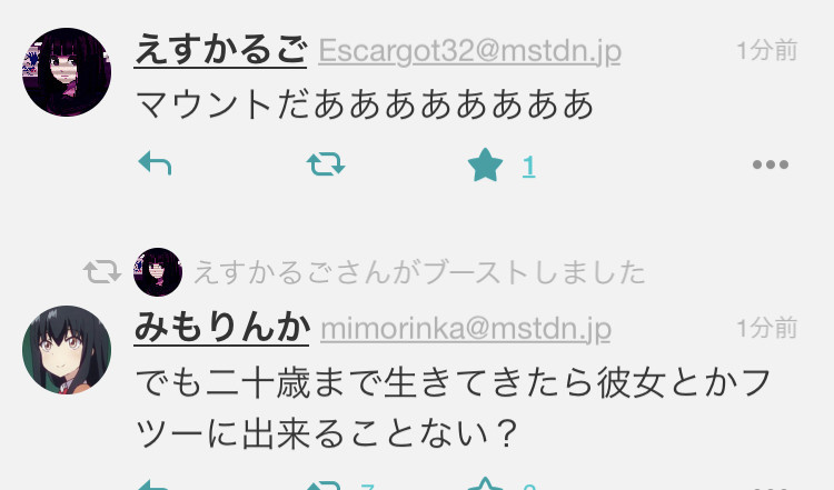 みもりんか (mimorinka@mstdn.jp@mstdn.jp)'s status on Tuesday, 15-Jan-2019 19:04:14 JST