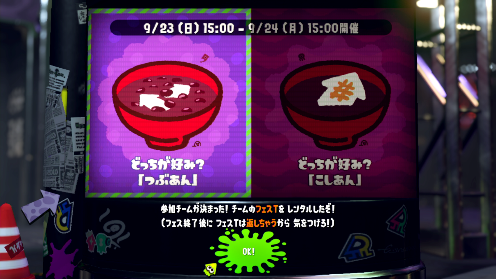イカリング2のフェス速報で、100倍マッチの勝者の画像が、実際の勝者のチームに関わらず、つぶあんチームとして表示されてしまう不具合がありました。