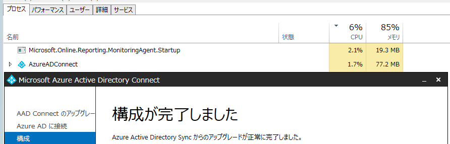 Azure Active ディレクトリ接続状態の同期で高い CPU の問題