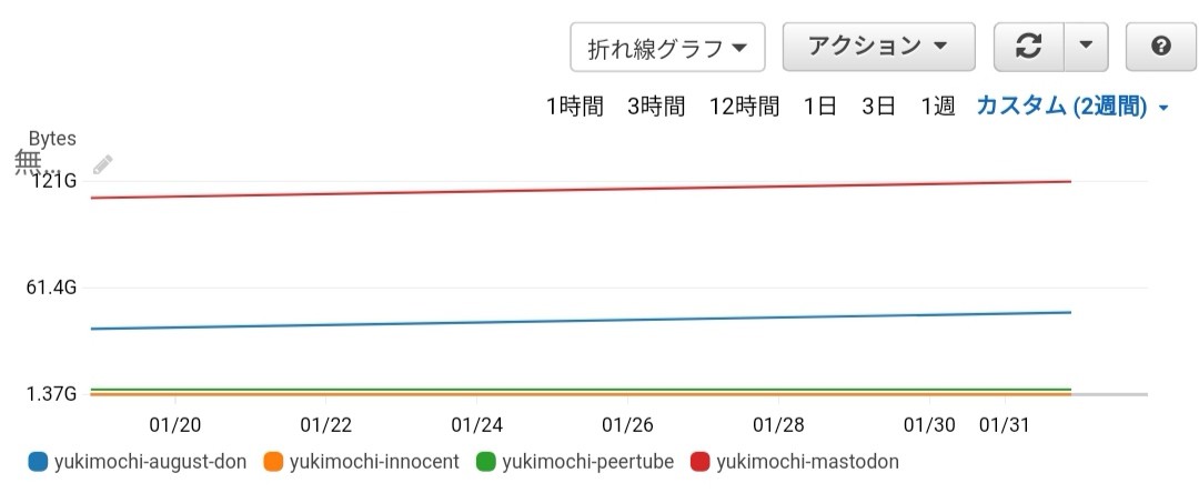 Cloudwatch 見ないとうちの容量わからんが。